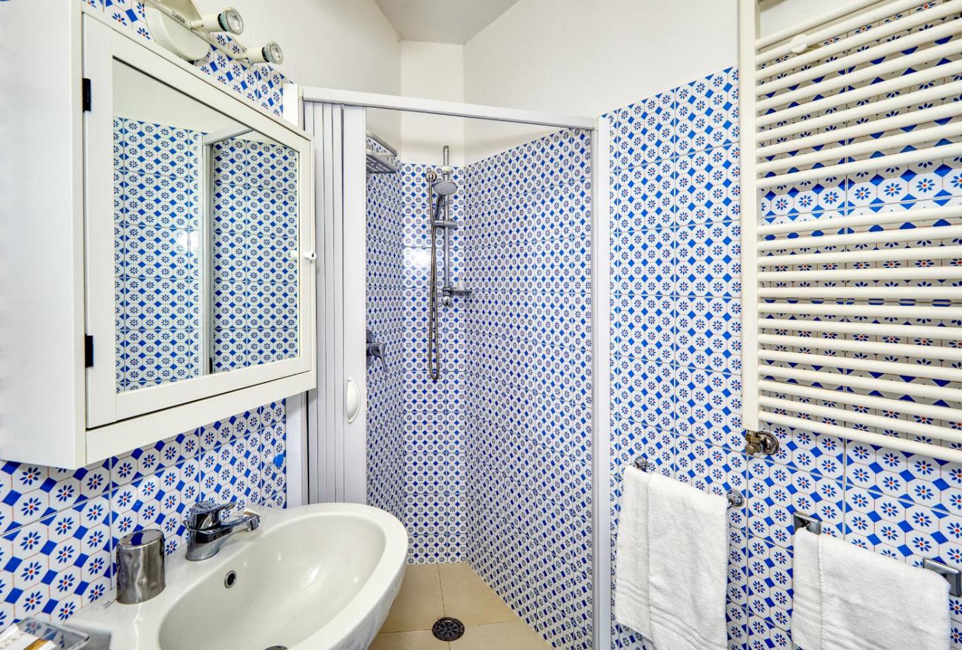 Camera Matrimoniale. Camera matrimoniale climatizzata con TV a schermo piatto con canali satellitari, bagno privato e terrazza con vista sul mare. Presenta 1 letto.